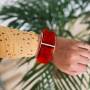 Nivi-armbåndet er et ‘statement accessory’ udarbejdet i smukt grønlandssælskind og guldfarvet zink alloy. Armbåndet er produceret med sælskindsrester fra vores produktion, hvilket sikrer at selv ganske små stykker sælskind ikke går til spilde. Armbåndet har en fjederlukkemekanisme, som er nem at betjene. Tip: Bær det brede armbånd sammen med de smalle armbånd og få et ekstra dramatisk udtryk.